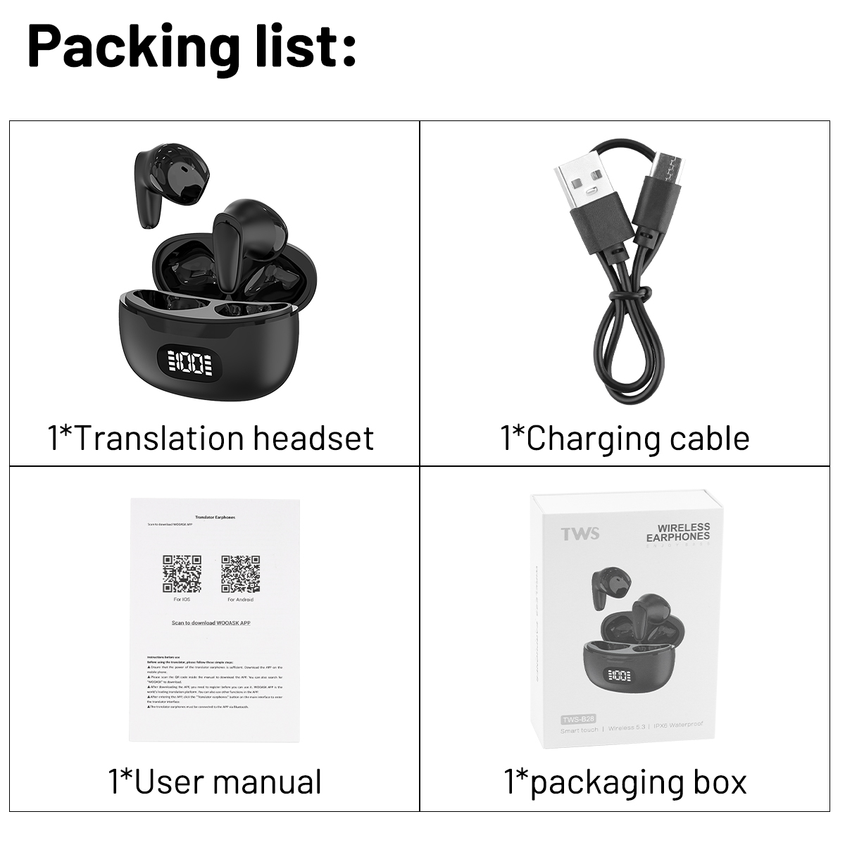 Intelligent voice translation headset 144 languages 0.5 seconds real-time translation 98% accuracy wireless bluetooth translation device